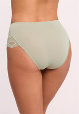 Our Belle Époque Panty is the perfect union of comfort and charm. This high-waisted brief ensures full coverage in a soft, eco-friendly Tencel™ Modal fabric, and features a seamless lace insert as an elegant touch. Made with Italian Art Nouveau-inspired lace stretch galloon lace, this panty makes for the perfect companion to our Belle Époque Bralette. Features: • High-waist brief • Eco-friendly TENCEL™ Modal x Eco Soft technology body • Made with Italian Art Deco-inspired stretch galloon lace • Lace panel insert without side seams for extra smooth comfort • 100% cotton gusset for breathability • Match with the Belle Époque Bralette Washing Instructions: • Hand wash, cold water OR machine wash closed in mesh bag, gentle cycle • Hang to dry Style #606