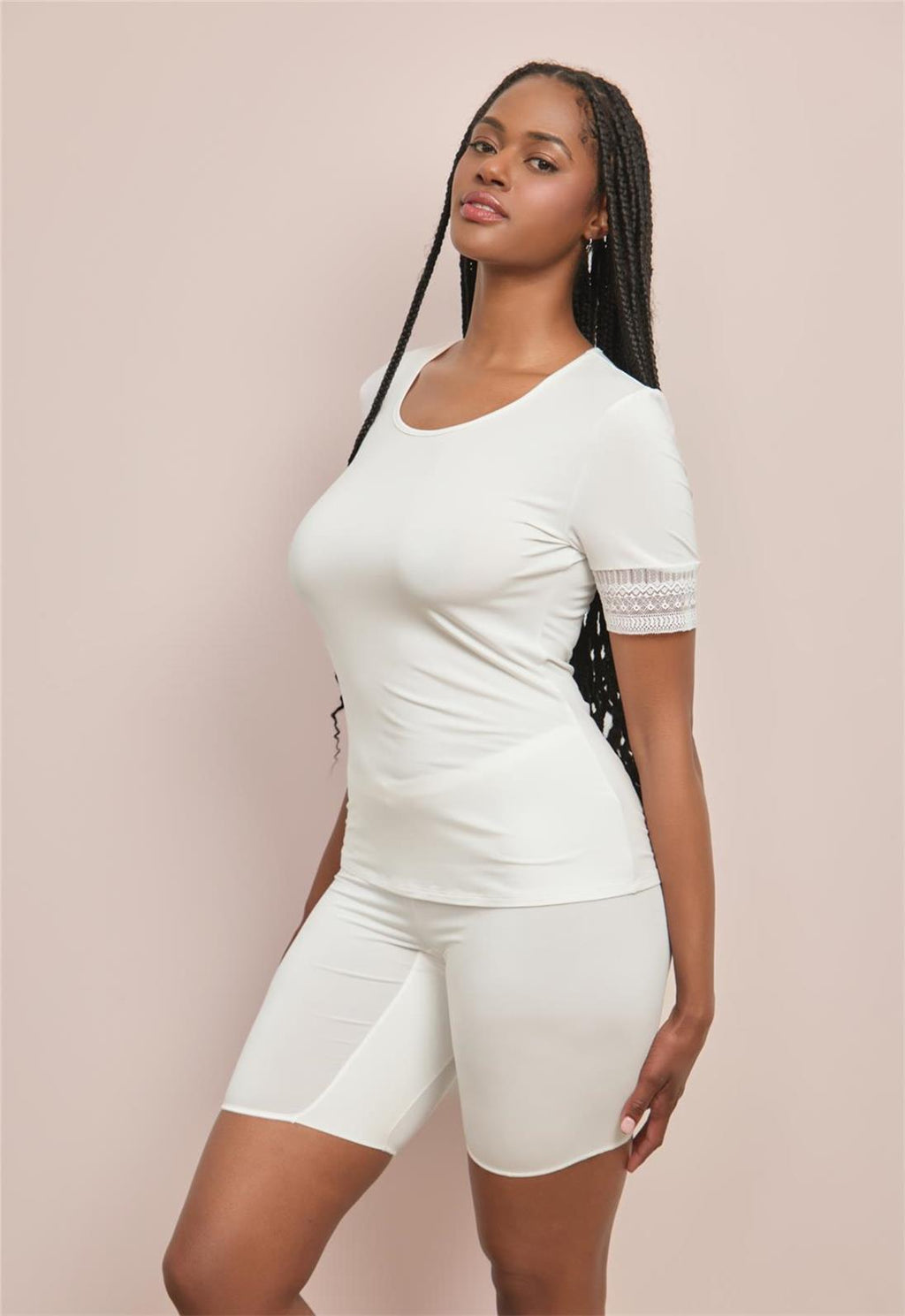 The short sleeve top you’ll reach for daily. Breathable, supremely soft modal and subtle lace at the sleeves make it feel like a little luxury. Wear solo or layer like a pro with your Body Bliss faves. Features: • TENCEL™ Modal x Micro Air - Soft, breathable, and eco-friendly fibers sourced from selfrenewable beechwood trees. • Delicate geo lace at neckline and sleeves - Adds a feminine, modern detail. • Round neckline - Classic and versatile for layering or standalone wear. • Ethically made by women who care. - Feel good wearing it, feel good about it. Size & Fit • Fit Note - True to size. Fabric & Care • 95% TENCEL™ Modal x Micro Air, 5% Spandex. • Hand wash in cold water or machine wash cold on a gentle cycle. • Use a lingerie bag for machine washing. • Hang to dry. Style #9753