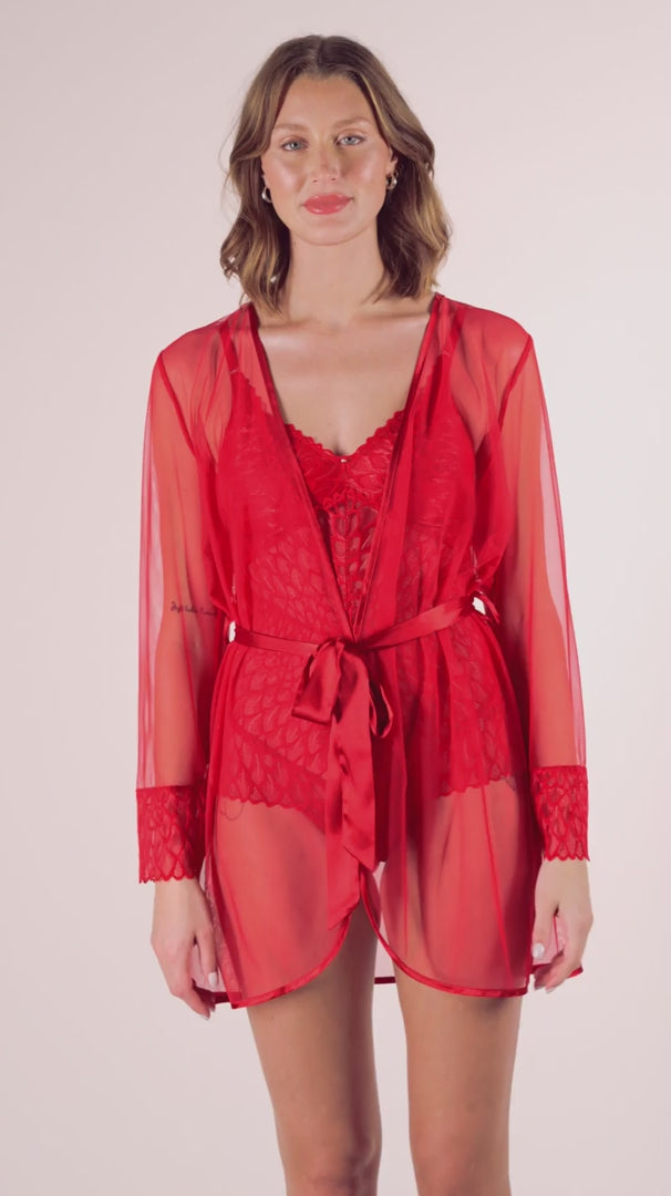 Ideal for lounging and getting ready in full glamour. This stunning mesh cover-up will elevate any lingerie set you choose to wear underneath. Features: • Ultra-soft sheer mesh • Rounded bottom hem • Lace trimmed sleeves • Removable satin belt • Ethically made Washing Instructions: • Hand wash, cold water OR machine wash closed in mesh bag, gentle cycle • Hang to dry Style #9341