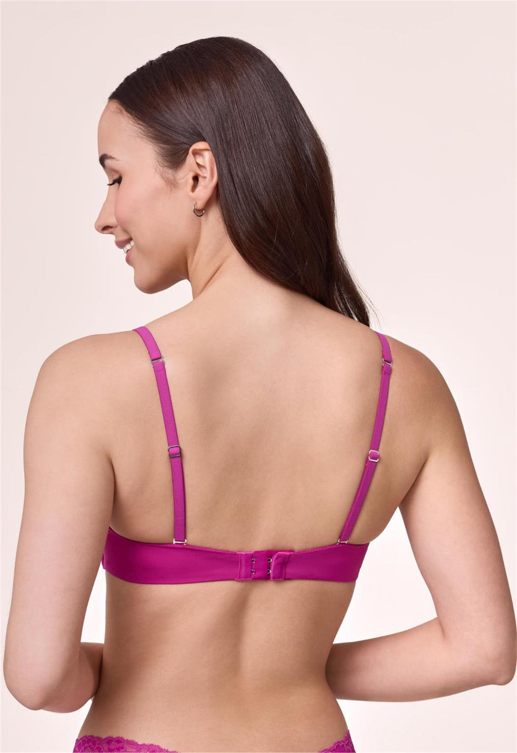 The ultimate wireless bra, the Wire-Free offers you all the support and body-hugging comfort you want in a T-shirt bra. Made with our signature ultra-soft microfiber, this customer favorite features soft molded foam cups and multi-position convertible straps that can be worn classic, halter or crisscross. Style with your favorite v-neck or lower neckline tops and dresses and don’t leave home without it - it’s the only one you’ll need to pack on a casual weekend getaway. Features: • Ultra-soft microfiber over soft, wireless molded cup • Double layer side wings provide support and comfort • Side-boning for extra support • Multi-position channel along band means straps can be adjusted for the perfect fit, offering a solution for narrow shoulders • Convertible straps can be styled classic, crisscross, or halter • Strap widths and hook-and-eye columns increase with size Fabric: 85% Nylon, 15% Spandex. Ethically made. Washing Instructions: • Hand wash, cold water OR machine wash with hook-and-eye closed in mesh bag, gentle cycle • Hang to dry Style #9317